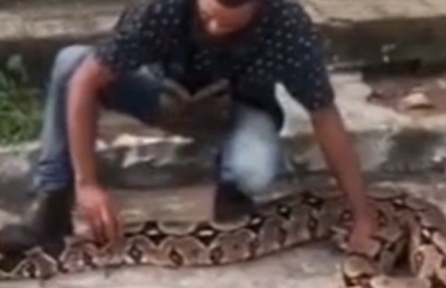 Uma jiboia com mais de três metros de comprimento foi resgatada pelo Corpo de Bombeiros na Rua João Ferreira de Mesquita, no bairro Parque dos Ipês, em São Gonçalo do Amarante, na Grande Natal. O animal foi encontrado em um terreno e chamou a atenção de moradores da região, que acionaram a equipe para a