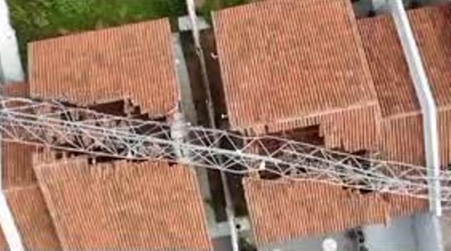 Uma antena de uma empresa de telecomunicações, de 42 metros de altura, caiu no fim da manhã desta terça-feira (21) sobre quatro casas na cidade de Extremoz, na Grande Natal. Ninguém ficou ferido no acidente. A torre estava sendo instalada no quintal de uma casa no conjunto Moinho dos Ventos. Com a queda, a antena