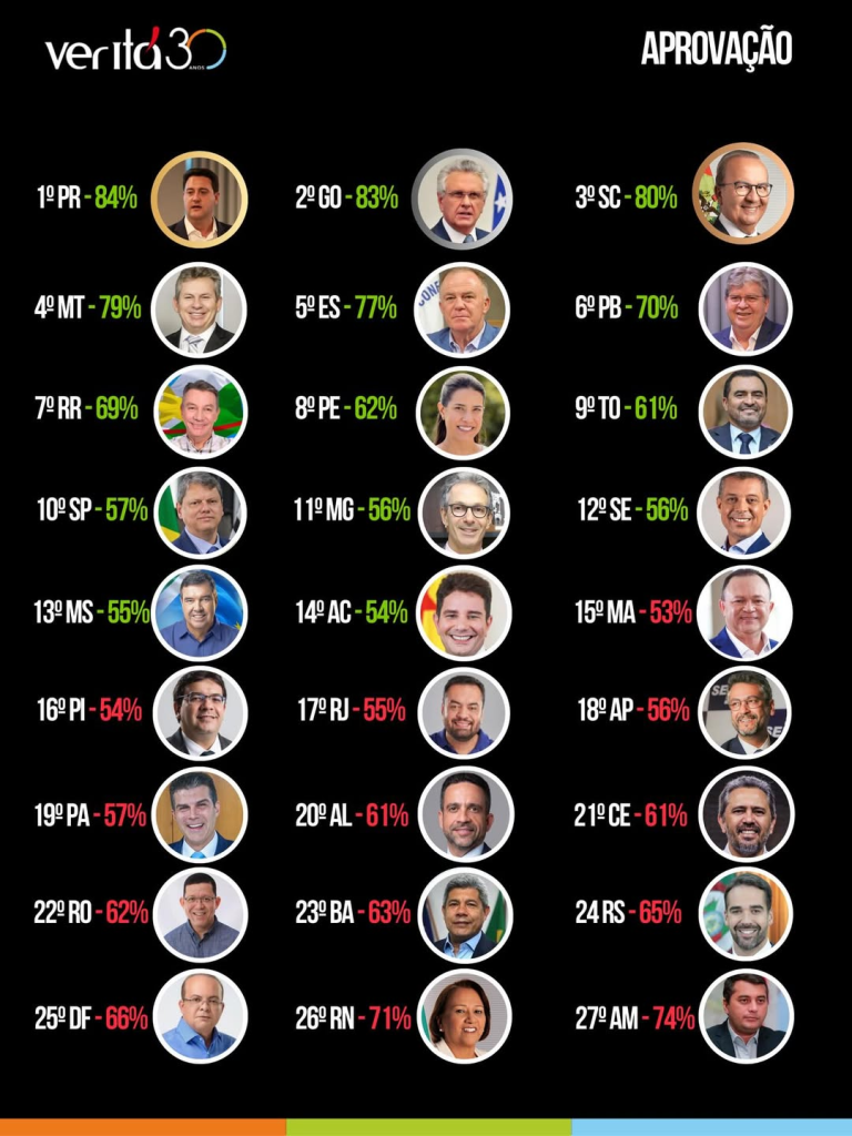 Com índice de reprovação de 71%, Fátima ocupa a penúltima posição no ranking de aprovação dos governadores e só fica à frente de Wilson Lima (74%), ex-governador do Amazonas que renunciou ao cargo para concorrer ao Senado.