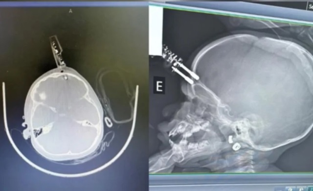 Segundo o médico, a mãe da bebê havia ido ao banheiro no momento do acidente. A criança estava com o carregador na mão quando caiu da cama, e acabou com o objeto cravado na cabeça.
