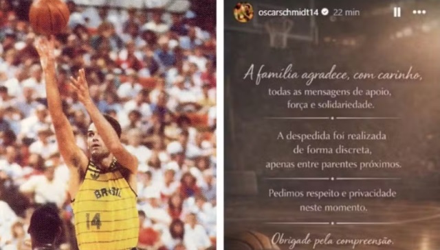 Em nota, a família agradeceu as manifestações de apoio e reforçou que a despedida ocorreu de forma íntima, restrita aos parentes próximos. “A despedida foi realizada de forma discreta apenas entre parentes próximos”, informa uma foto com texto publicado na página oficial de Oscar no Instagram.
