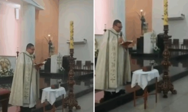 Durante a cerimônia, realizada na Paróquia Santos Anjos, o padre, que segundo a TV Globo se chama Vagner Augusto, se referiu a bebê apenas como “a criança” ou “a filha de vocês”.
