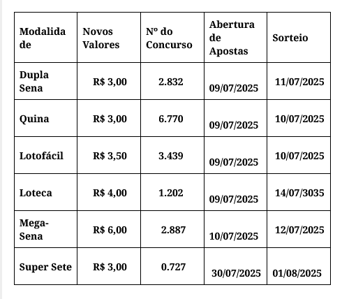 As apostas das Loterias Caixa aumentam de preços, a partir desta quarta-feira 9. O reajuste alcança as modalidades como a Dupla Sena, Quina, Lotofácil, Mega-Sena, Loteca e Super Sete.